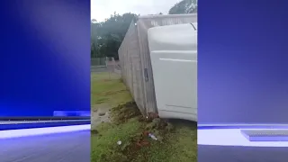 CAMINHÃO TOMBA NA BR-101 E A CARGA É SAQUEADA