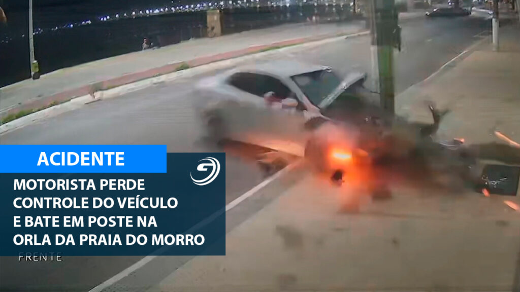 MOTORISTA PERDE CONTROLE DO VEÍCULO E BATE EM POSTE NA ORLA DA PRAIA DO MORRO