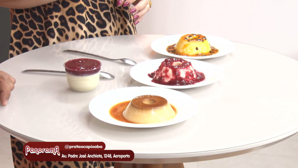 Você sabia que no restaurante Pratão Capixaba você também encontra deliciosas sobremesas? Confere essas dicas que chegaram aqui pra gente no estúdio: pudim tradicional, de maracujá e de frutas vermelhas, além de uma deliciosa panacota.