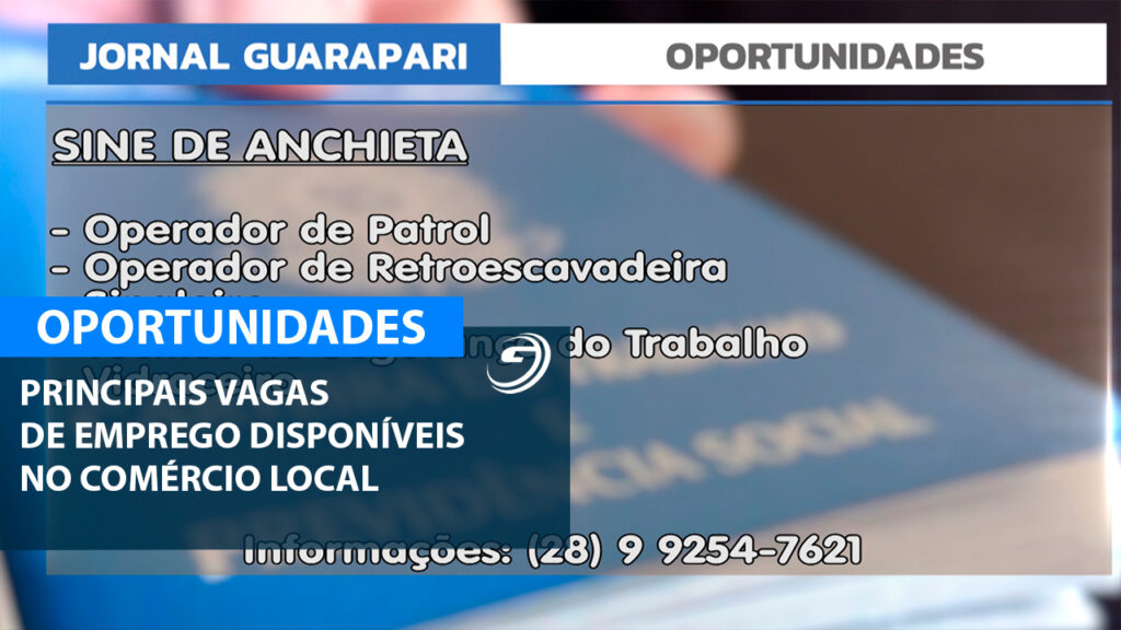 Confira as principais vagas de emprego disponíveis no mercado de trabalho local. #tvguarapari #guarapari #jornalguarapari