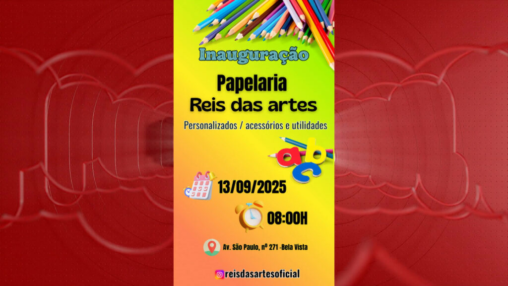 Neste sábado, às 8 da manhã, tem inauguração da papelaria Rei das Artes, em frente ao campo do Bela Vista. A nova loja chega com uma variedade incrível de materiais escolares, itens de escritório, informática, produtos para arte e muito mais!