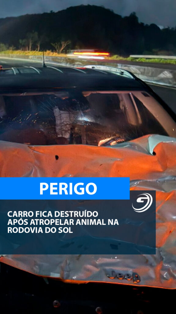 Um animal de grande porte atravessou a Rodovia do Sol, na noite da última segunda-feira (01), e foi atingido por um carro. O impacto foi tão forte que o veículo teve perda total e o animal acabou morrendo no local. Apesar da gravidade da colisão, os ocupantes do carro não se feriram.