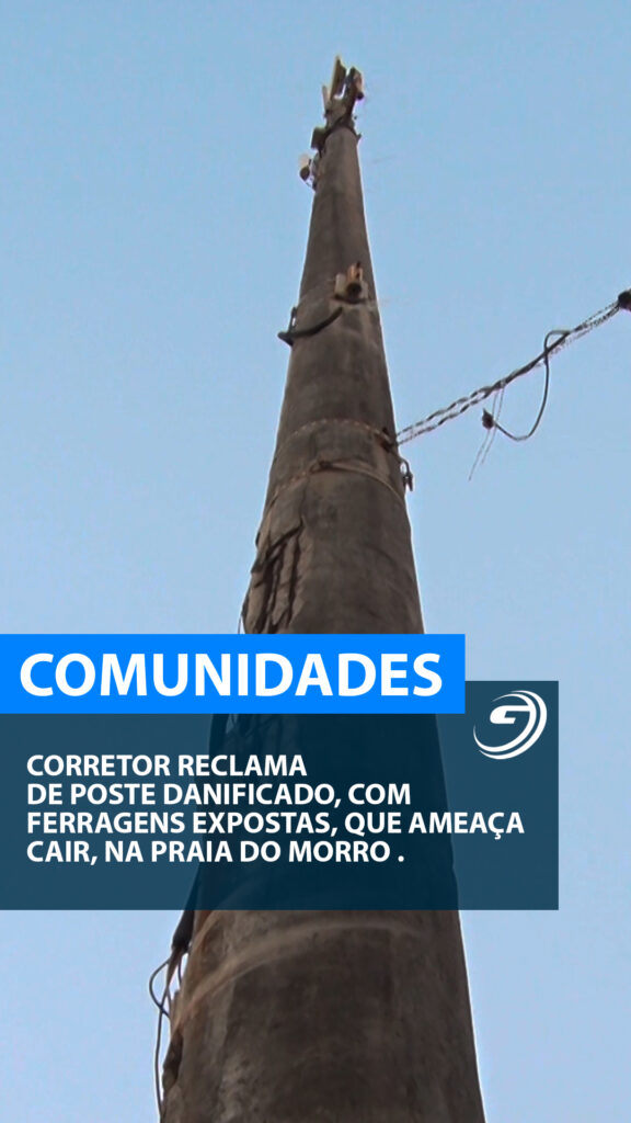 CORRETOR RECLAMA DE POSTE DANIFICADO, COM FERRAGENS EXPOSTAS, QUE AMEAÇA CAIR, NA PRAIA DO MORRO .