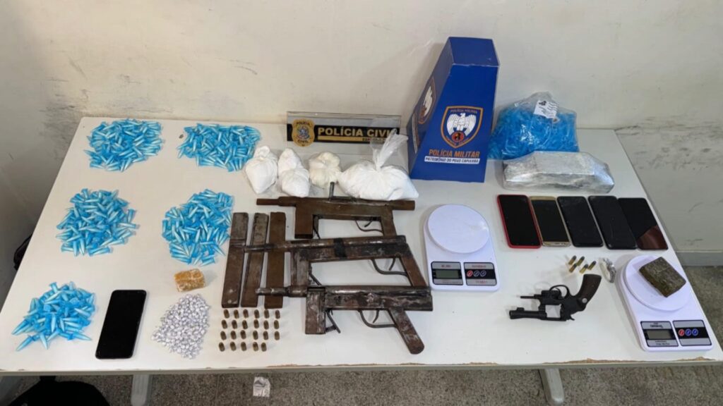 Durante uma operação a polícia civil apreendeu armas e drogas no bairro Adalberto em Guarapari. Veja os detalhes no Caso de Polícia.