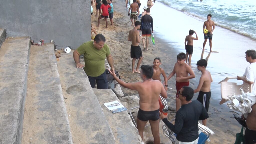 Morador alerta para as condições precárias da escada de acesso a Praia da Areia Preta no centro da cidade. O Repórter nos Bairros foi lá conferir.