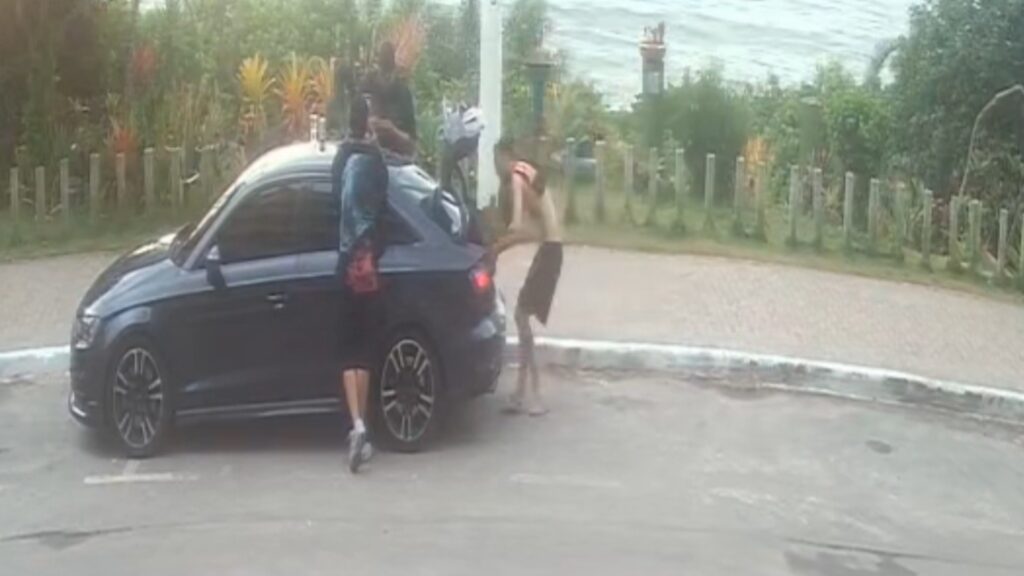 Câmera de segurança flagra homens levando vaso ornamental na Praia de Peracanga