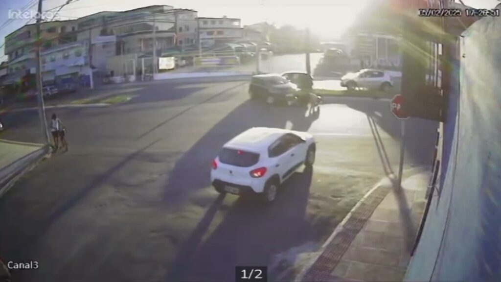 Câmera flagra colisão entre carro e moto em Muquiçaba