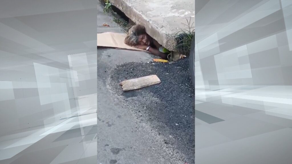 Uma moradora em situação de rua ficou presa em um bueiro no Morro da Caixa D’água. Ela contou para a nossa equipe que entrou pra buscar uma garrafa de cachaça.
