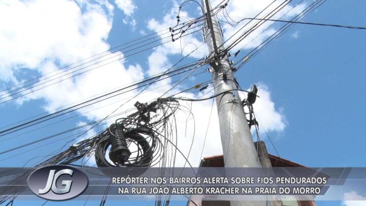 Na Praia do Morro, o alerta é com fios soltos. Assunto para o Repórter nos Bairros.