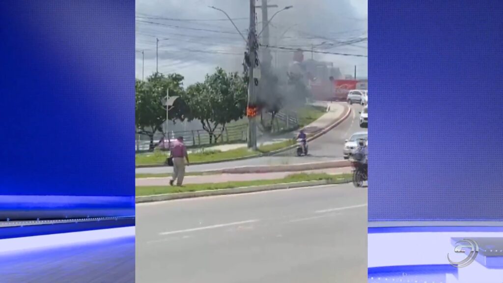 Fios de um poste de energia pega fogo na Avenida Davino Mattos no centro da cidade
