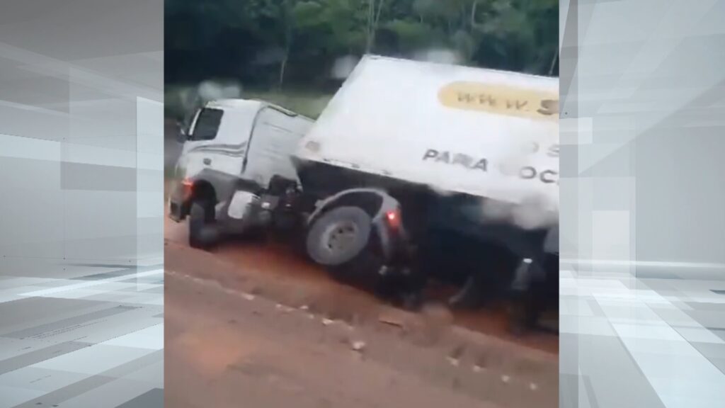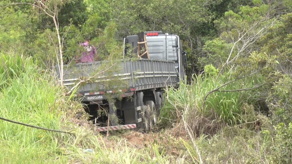 Um caminhão foi parar na vegetação da área de proteção ambiental de Setiba. O condutor seguia para o estado do Paraná quando perdeu o controle da direção.