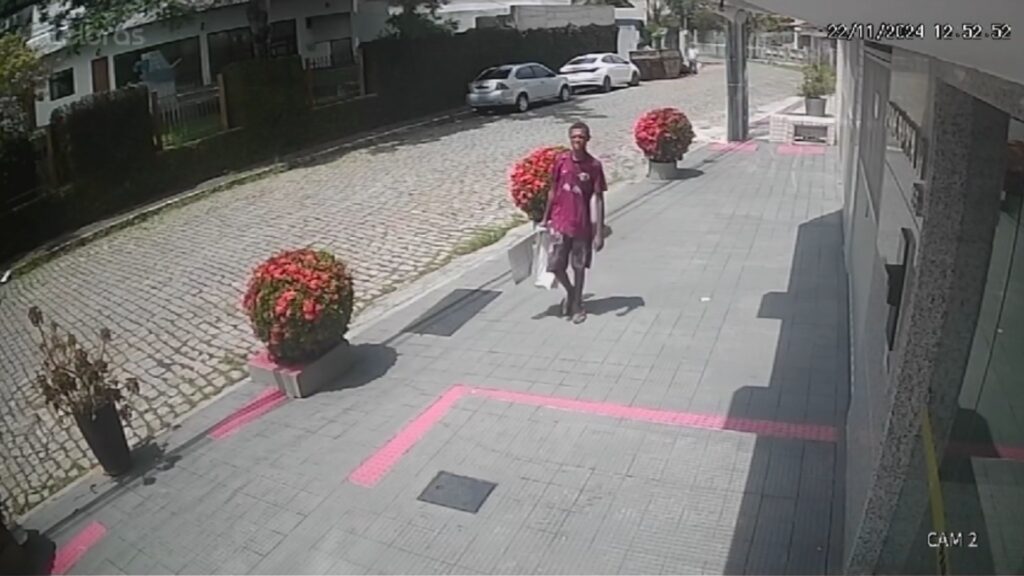Câmera flagra homem furtando portão de prédio no centro da cidade