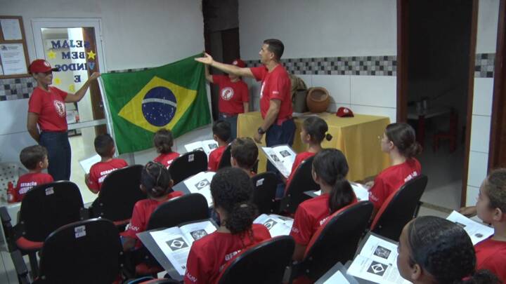 Um bombeiro militar oferece de graça curso de bombeiro mirim em uma igreja no bairro Kubitschek. O curso não é vinculado à brigada mas ensina valores importantes para as crianças.
