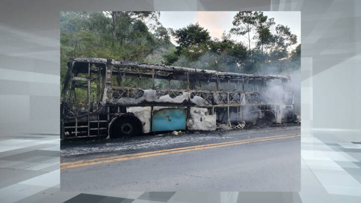 Um ônibus de excursão que seguia para Guarapari pegou fogo na BR 362, em Venda Nova do Imigrante.