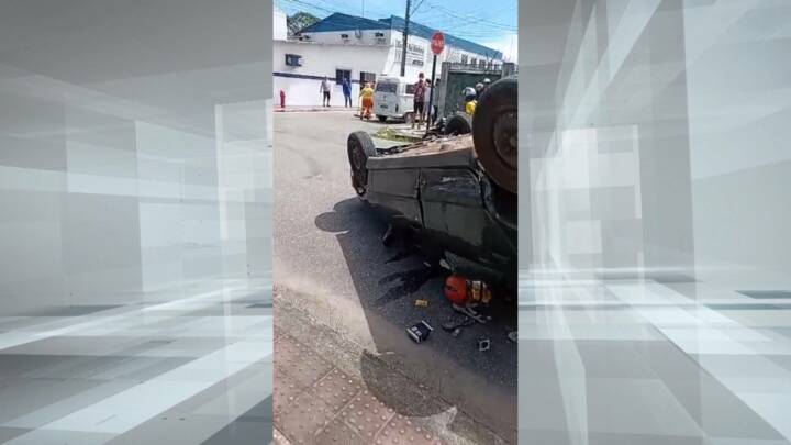 Carro com turistas mineiros capota em cruzamento no Olaria