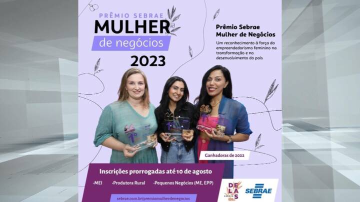 As inscrições para o “Prêmio SEBRAE Mulher de Negócios” foram prorrogadas até o próximo dia 10. A iniciativa tem o objetivo de impulsionar e encorajar o empreendedorismo feminino, conquistar novos clientes, fechar contratos e alcançar ainda mais sucesso.