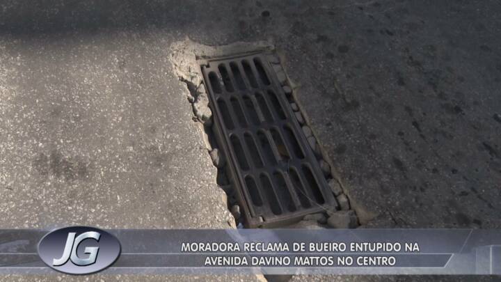 Uma moradora alerta para a situação de um bueiro obstruído na Avenida Davino Mattos, no centro. Assunto para o Repórter no Bairros.
