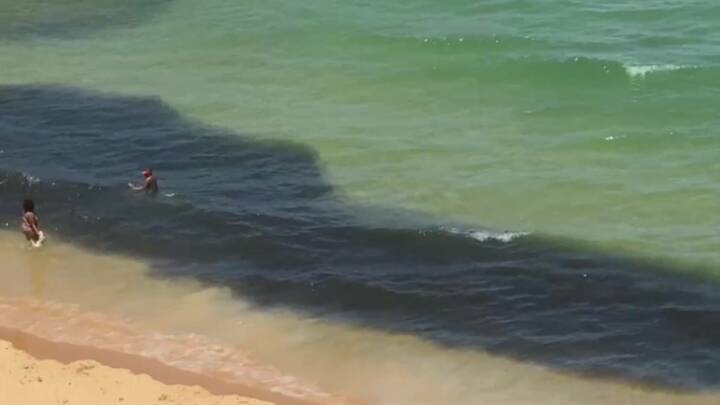 Nossa equipe registrou um grande cardume de peixes na Praia do Riacho. A aglomeração dos peixes formou uma mancha no mar que podia ser vista de longe.