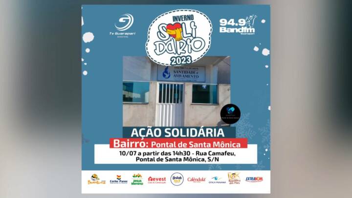 Segunda-feira, dia 10, o bazar da Campanha Inverno Solidário será na Igreja Assembleia de Deus Santidade e Avivamento, no bairro Pontal de Santa Mônica, a partir das 14:30.