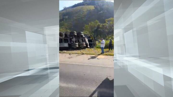 Uma carreta tombou no quilômetro 346 da BR 101 em Guarapari