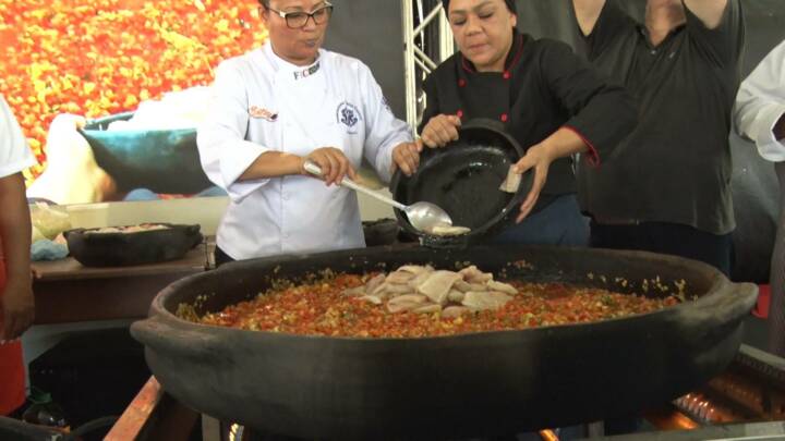 Turistas acompanharam o preparo da maior moqueca do mundo no Festival de Castelhanos
