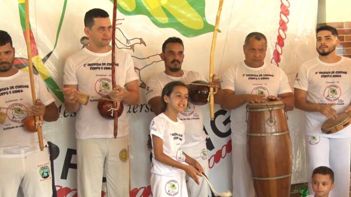 A Associação Salvamar, no bairro Perocão, tem um projeto que oferece aulas de capoeira paras as crianças. Neste sábado, aconteceu a troca de cordas e ainda teve uma roda dança africana para fortalecer a cultura nos pequenos.