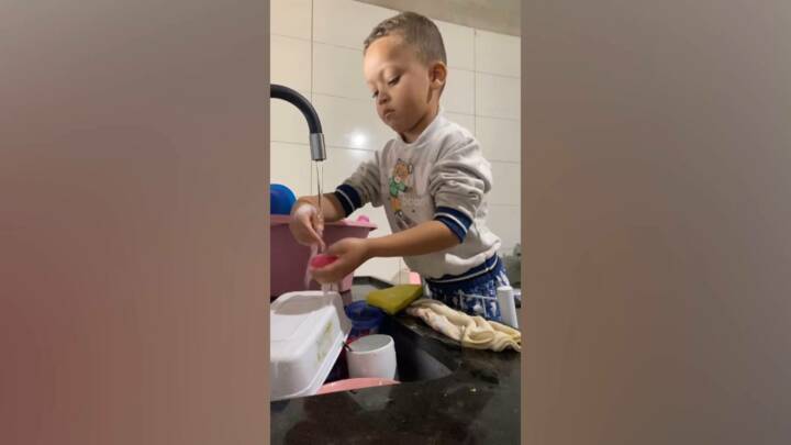 Vídeo de menino de 5 anos viraliza na internet ajudando a mãe com tarefas de casa