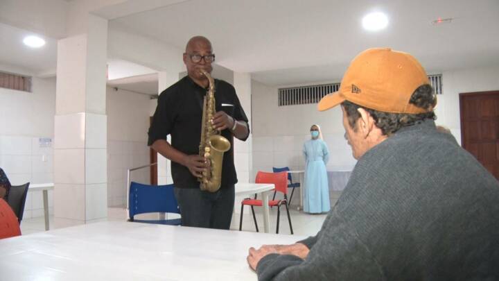 Um saxofonista visitou o recanto dos idosos na tarde desta quarta-feira para levar um pouco de música para casa de repouso. E chama a atenção para a importância pessoas separarem um tempinho para alegrar o dia dos idosos.