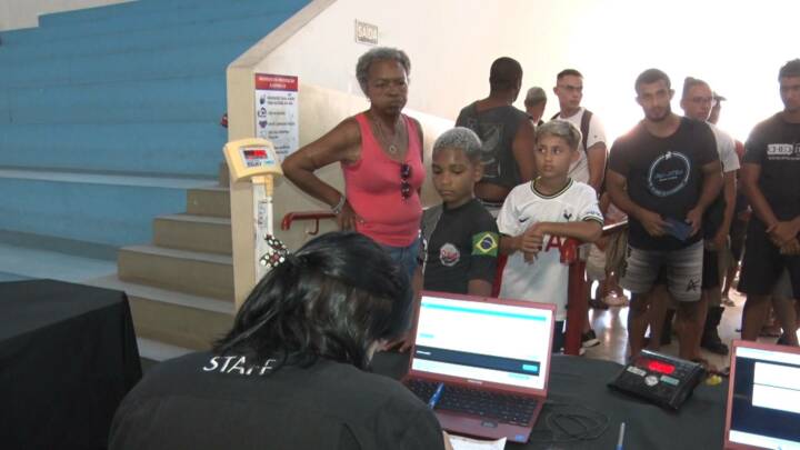 Neste domingo teve campeonato internacional de jiu-jitsu em Guarapari. Cerca de 600 atletas de todas as idades participaram da disputa. Na tarde de sábado teve a pesagem e nós acompanhamos.