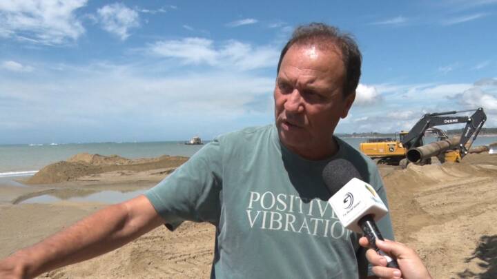 Neste sábado, o diretor presidente do DER veio a Meaípe acompanhar de perto o andamento da obra de engordamento da faixa de areia. O serviço de dragagem começou na última quinta-feira e deve durar três meses.