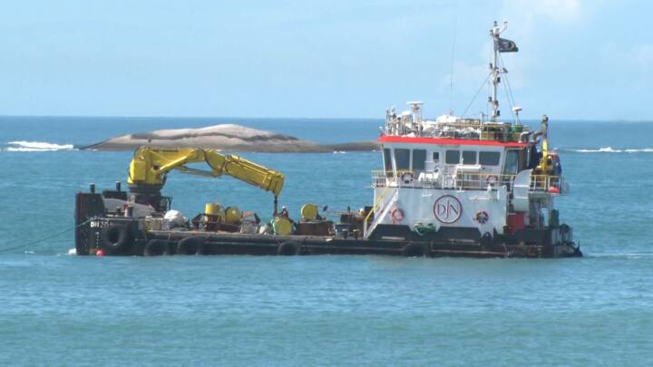 Começa nova fase da obra de engordamento da faixa de areia da praia de Meaípe