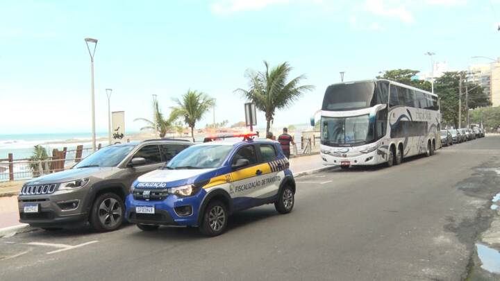 Motorista de ônibus de excursão para em local irregular e é orientado a retirar o veículo